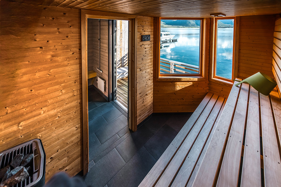 After a day outdoors, guests can relax and warm up in our sauna, enjoying the contrast between heat and cold. For the adventurous, access to the sea allows for a refreshing cold dip – a true Northern Norwegian experience.