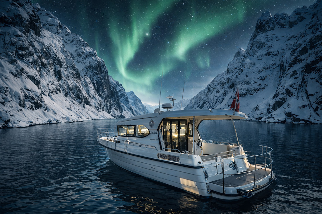 Join a guided tour to the iconic Trollfjord, one of Northern Norway’s most dramatic fjords. Surrounded by steep mountain walls and Arctic waters, this is a must-see winter destination. Tours are adapted to weather and conditions, always with safety and quality in focus.